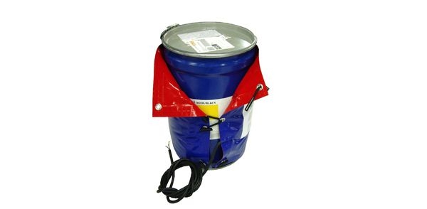 The 5 gallon drum heater is a flexible and watertight heating panel coated with 2 plastic fabrics : an heating red face and an insulated blue face.